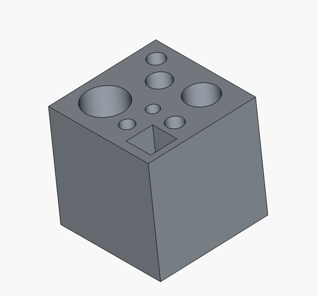 My object was slightly simple. I wanted to print a block that fit perfectly in my makeup stand to hold spesific makeup brushes, my blush stick, and eyeliner pencils upright. The block itself would fit perfectly in the slot, being 2.5 inches on each side (63.5 mm).